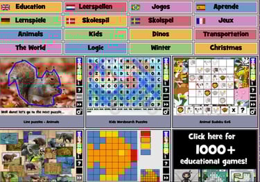 A free site with hundreds of educational games and puzzles that make learning fun and interactive. Students can practice math, language skills, geography, logic, and more through engaging activities.