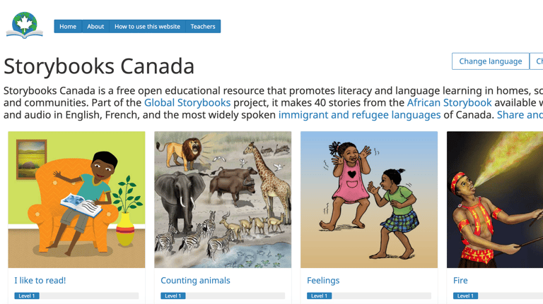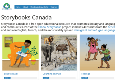 Supports literacy and language learning at home, in schools, and communities. It offers 40 stories from the African Storybook with text and audio in English, French, and Canada’s most widely spoken immigrant and refugee languages.