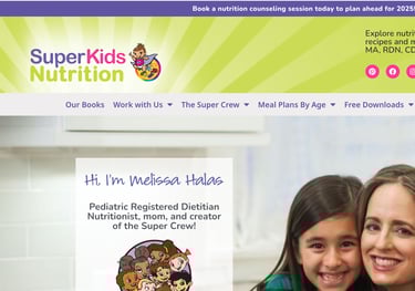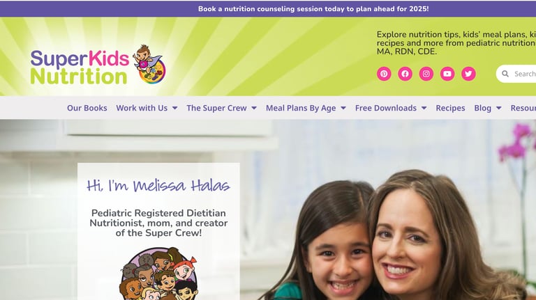 Nutrition resource created by a pediatric dietitian that helps kids and families learn about healthy eating through articles, tips, recipes, activities, and fun character-based content.