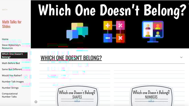 An interactive math activity that challenges students to analyze four shapes or objects and decide which one doesn’t fit, great for building reasoning and discussion.