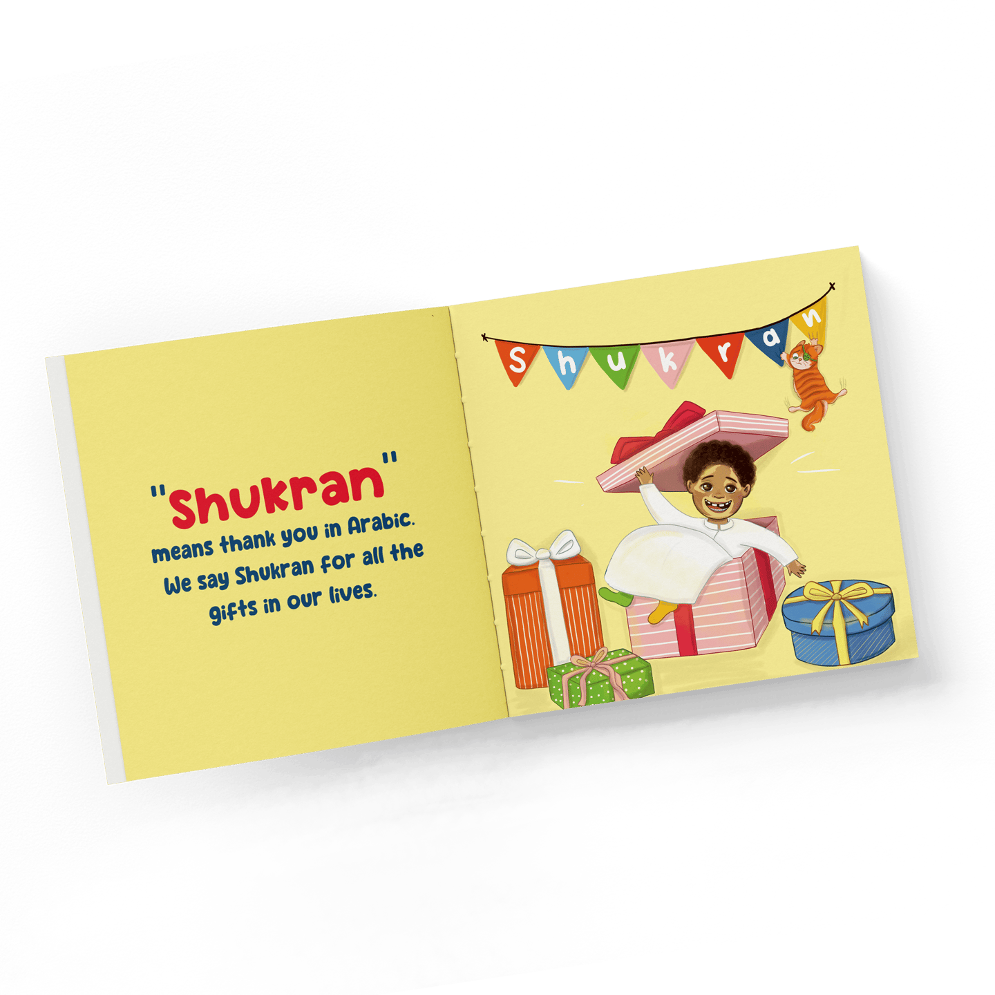 ''My Heart Says Shukran'' is a warm, bilingual (English-Arabic) picture book that helps little ones appreciate the simple joys in their lives.The story follows Kareem, an 8-year-old Arab boy with vitiligo, and his sassy cat, Kiwi. Kareem embraces his uniqueness, his skin is just one part of who he is. With a grateful heart, he notices the love and everyday happiness around him.The book features sweet rhymes and key Arabic words in English transliteration. Its bright, quirky scenes introduce children to family, nature, food, and meaningful daily moments. My Heart Says Shukran inspires kids to live joyfully and see the beauty in every day.